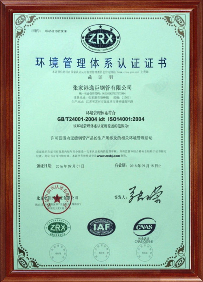 環(huán)境管理體系認(rèn)證證書(shū)